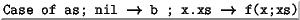 | append | Def as @ bs == Case of as; nil bs ; a.as' [a / (as' @ bs)] (recursive) |